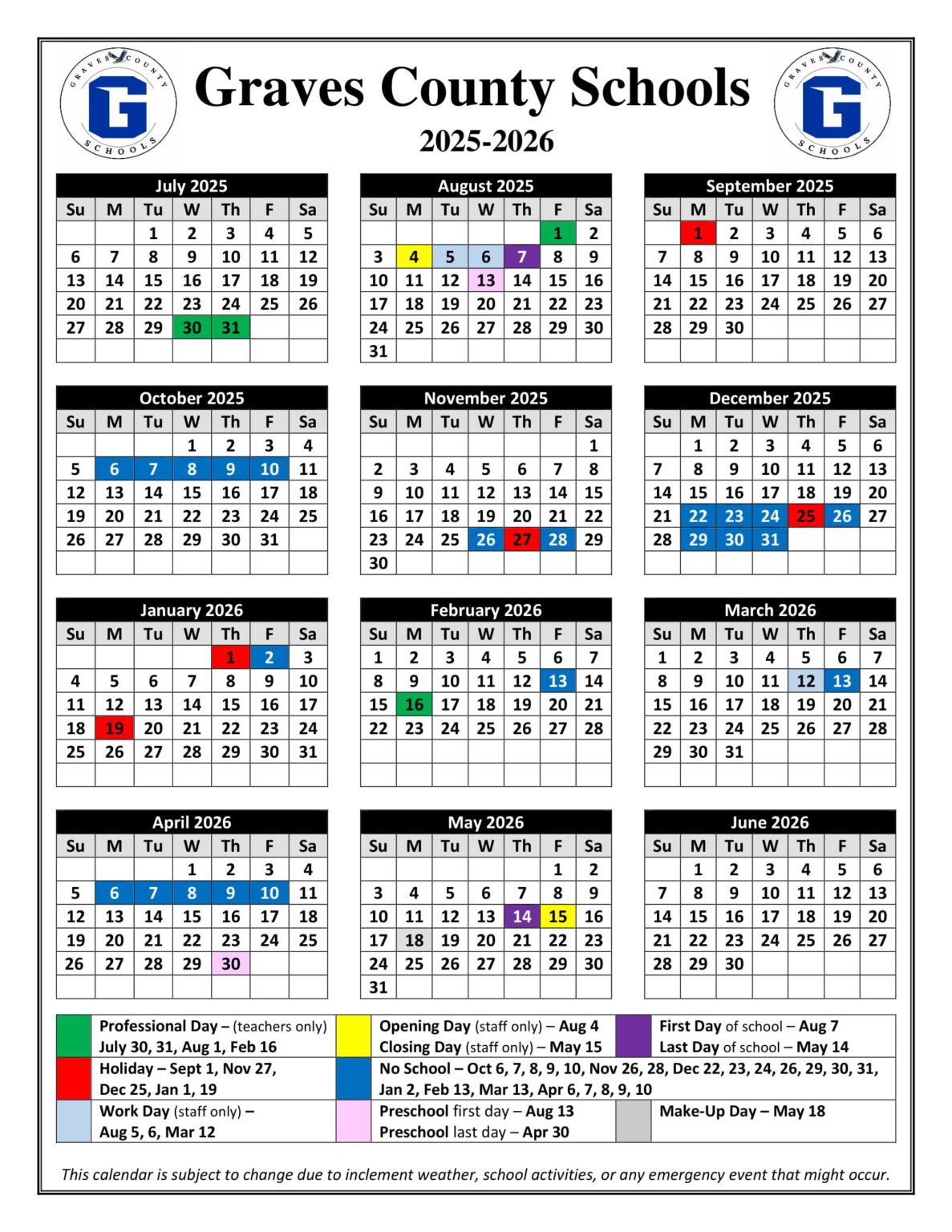 Graves County Schools Calendar