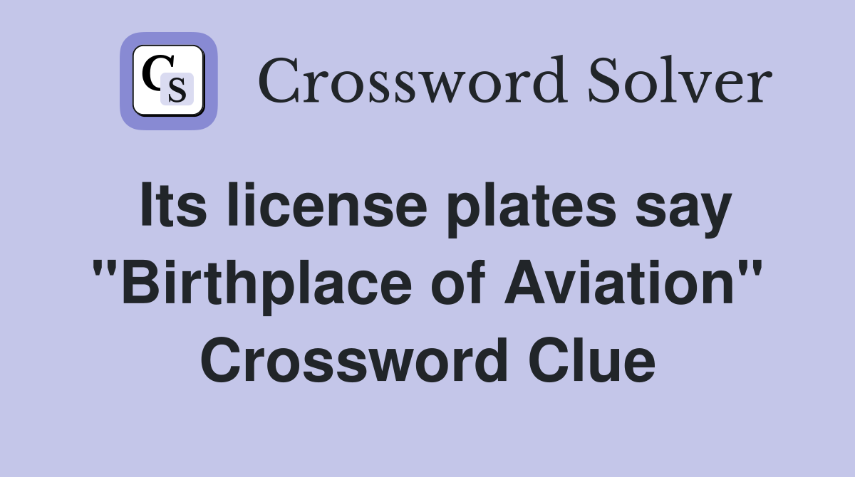 Its license plates say quot Birthplace of Aviation quot Crossword Clue