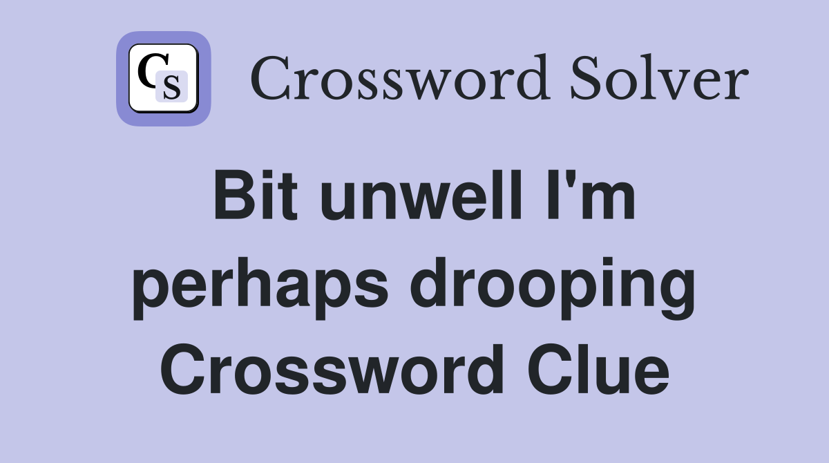 Bit unwell I #39 m perhaps drooping Crossword Clue Answers Crossword Solver
