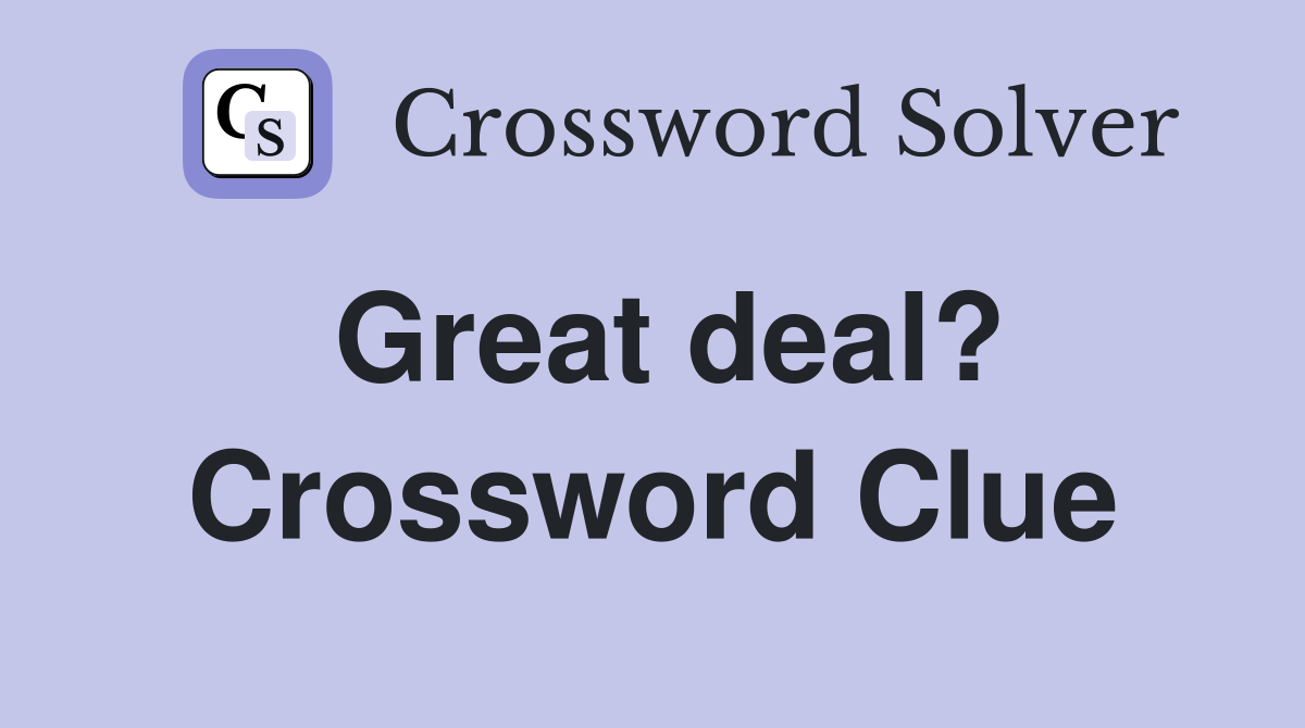 Great deal? Crossword Clue Answers Crossword Solver