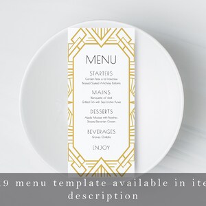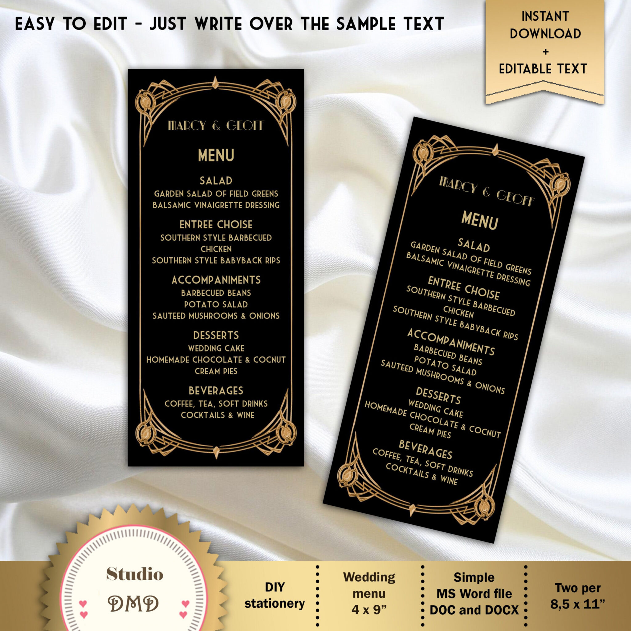 Gatsby Menu Template EDITABLE Art Deco Wedding Menu Cards Etsy