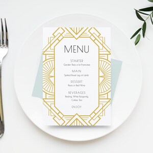 Printable Menu Card Template Great Gatsby Style Art Deco Etsy Ireland