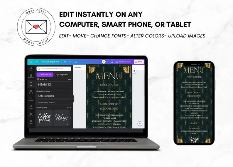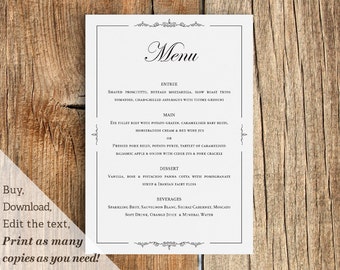 Printable Art Deco Menu Template 5x7 Art Nouveau Dinner Menu Editable