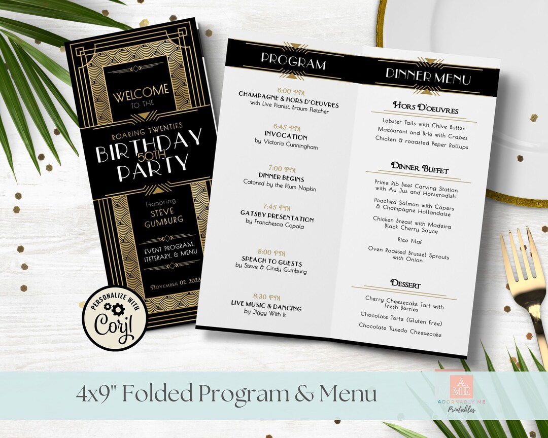 Roaring Twenties 4x9 Program Menu Great Gatsby Menu Template Art Deco