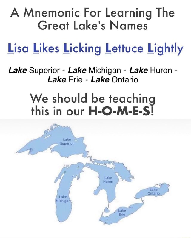 A Mnemonic For Learning The Great Lake #39 s Names Lisa Likes Licking