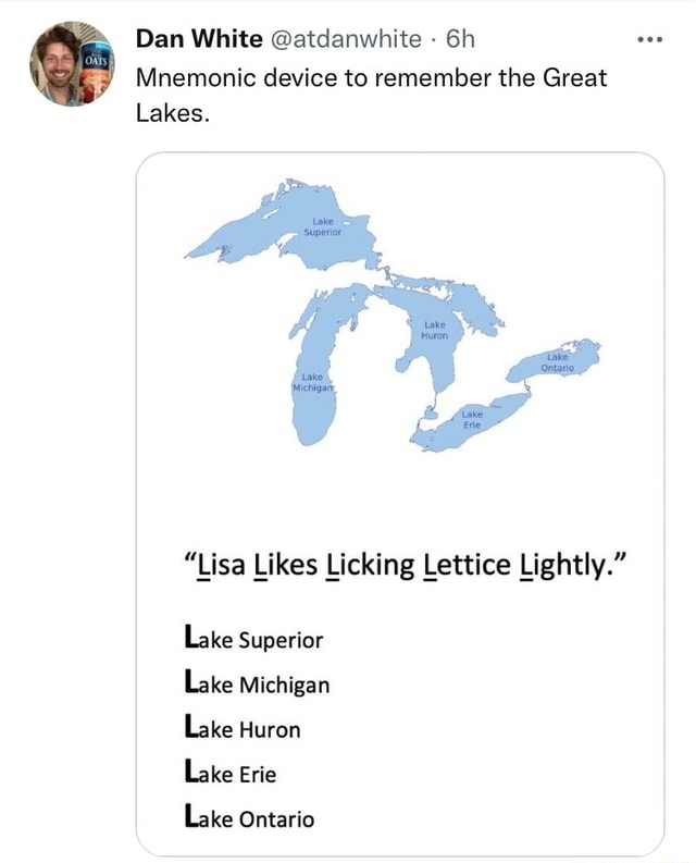 Dan White atdanwhite Mnemonic device to remember the Great Lakes