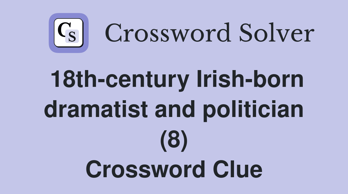 18th century Irish born dramatist and politician (8) Crossword Clue
