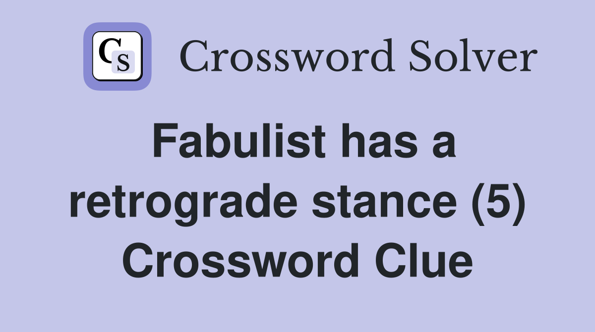 Fabulist has a retrograde stance (5) Crossword Clue Answers