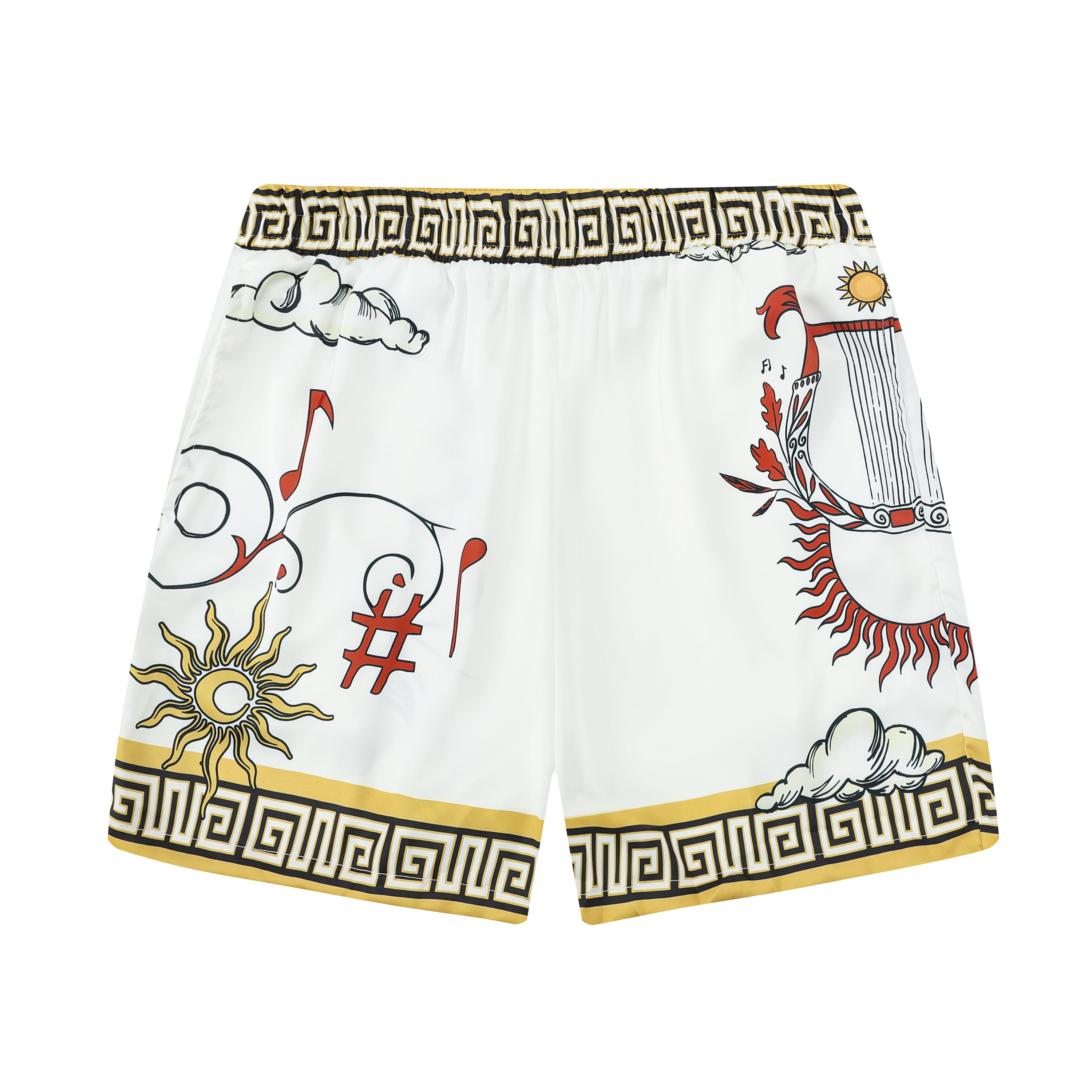 Greek God Sun Pattern Silk Fiber Waistband Shorts Jonvidesign
