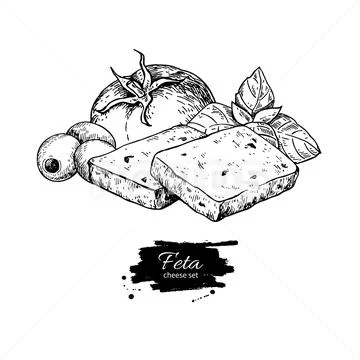 Greek Feta Cheese Block Drawing Vector Hand Drawn Food Sketch Stock
