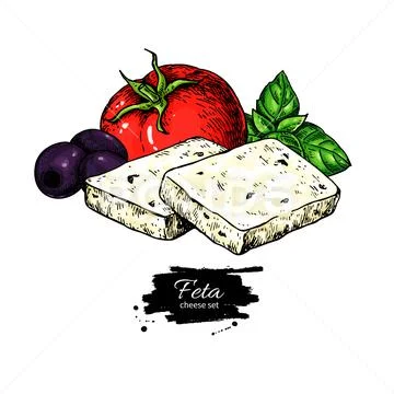 Greek Feta Cheese Block Drawing Vector Hand Drawn Food Sketch with