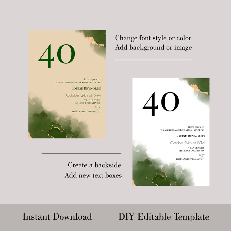 Emerald Green Birthday Invitation Template 100% Editable Abstract