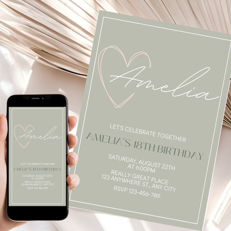 Sage Green Birthday Invitation Template Minimal Invite Elegant