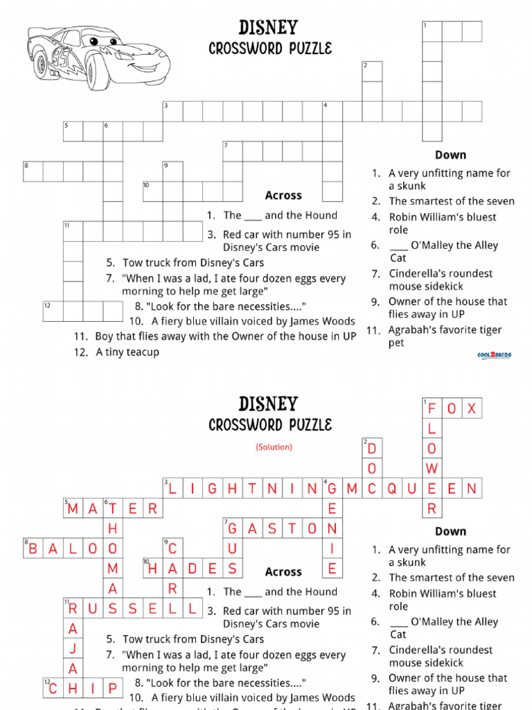 Hard Disney Crossword Puzzles Printable PDF