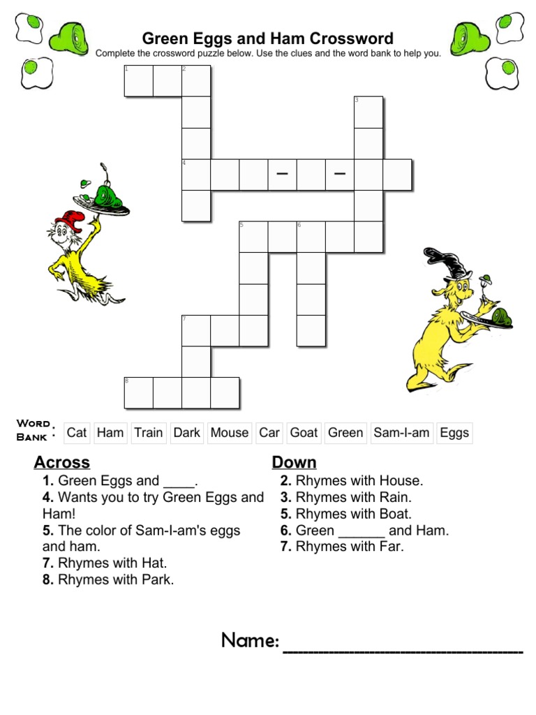 Green Eggs and Ham Crossword WordMint