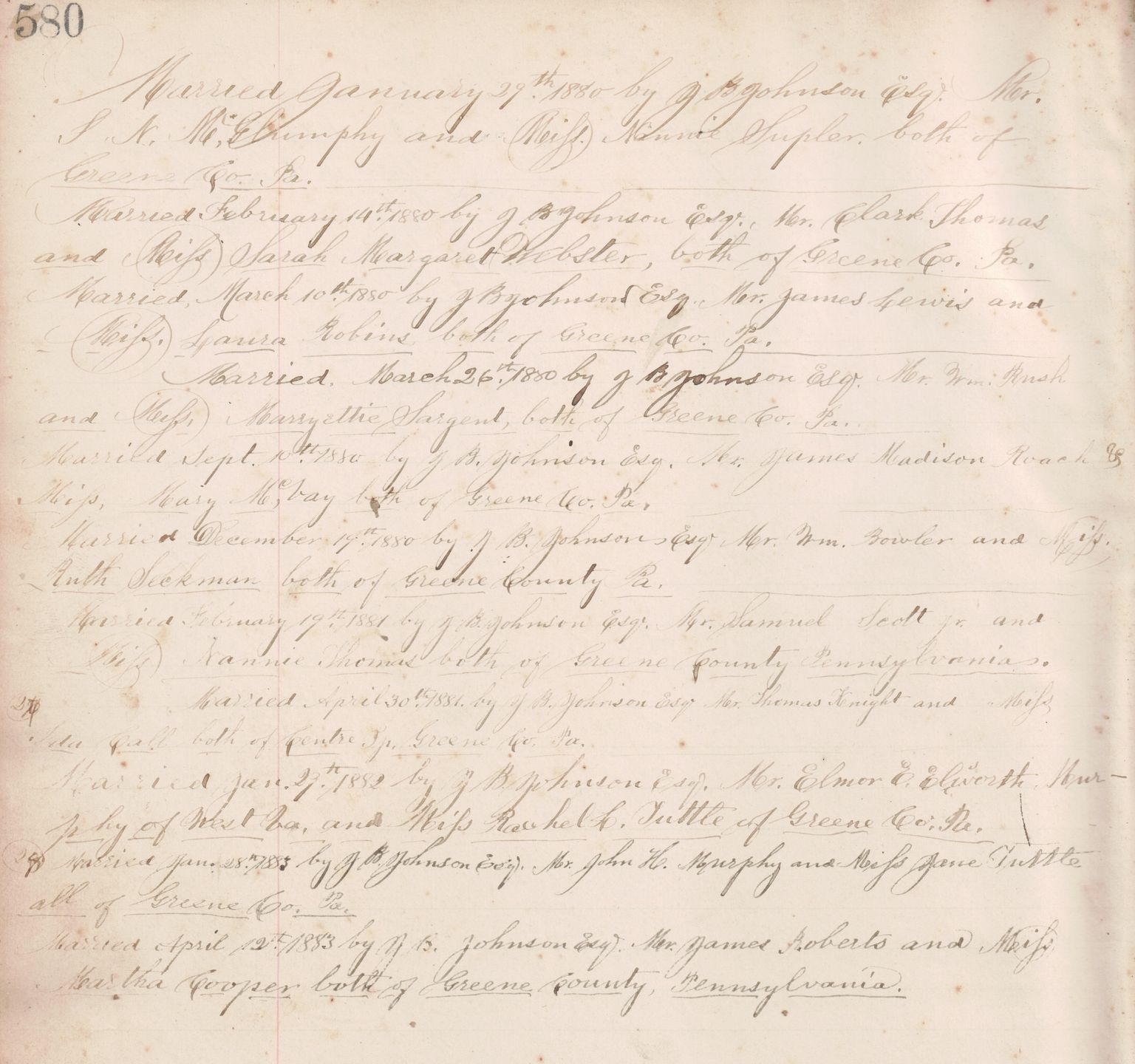 Justice of the Peace Docket (Marriages only) Center Township Greene