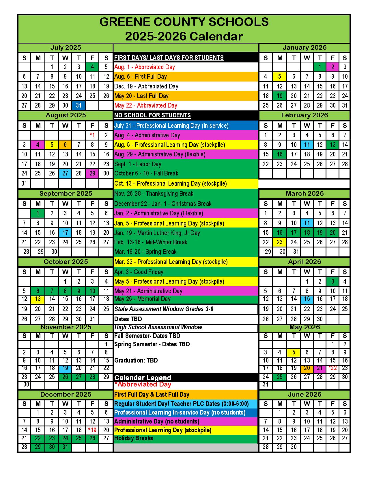 Greene County Schools Calendar 2025 2026 in PDF