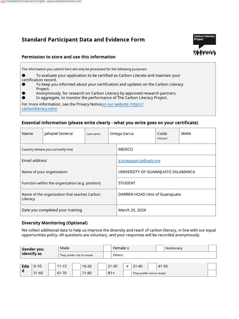 Certification Carbon Literacy Jahaziel Ismerai Ortega García PDF
