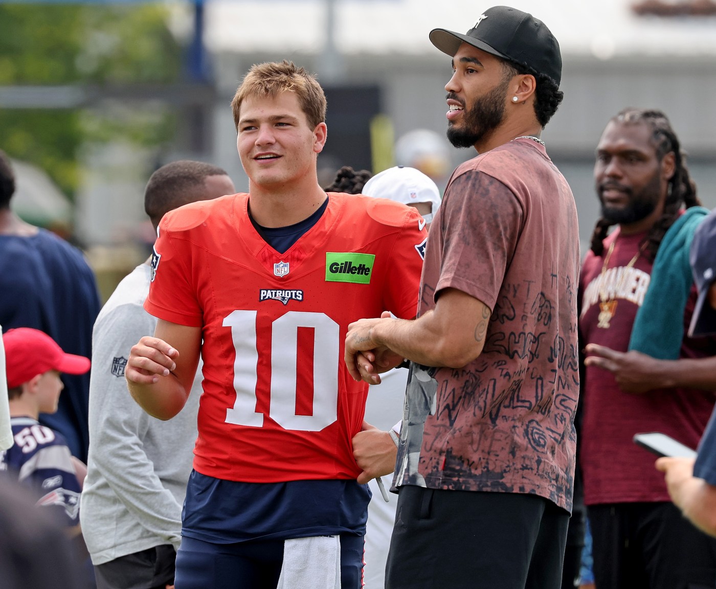 Jayson Tatum greets Drake Maye after Patriots practice says he s