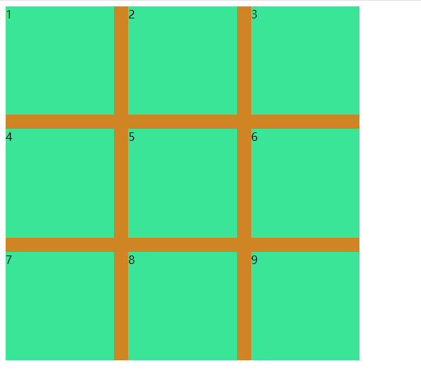 grid template columns: repeat(3 1fr) grid template rows: repeat(3