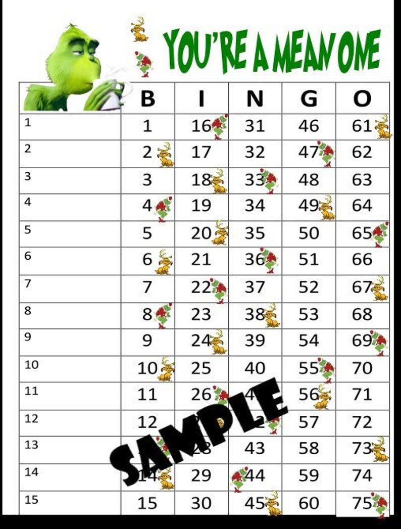 Printable Grinch Bingo Game the Grinch Digital Download Etsy