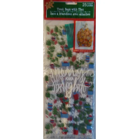 GRIND New Christmas Cello Party Gift Bags 25 Count Treat Bags With