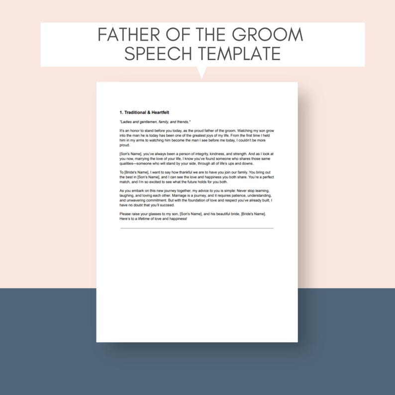 Father of the Groom Speech Toast Blessing Editable Father of the Groom