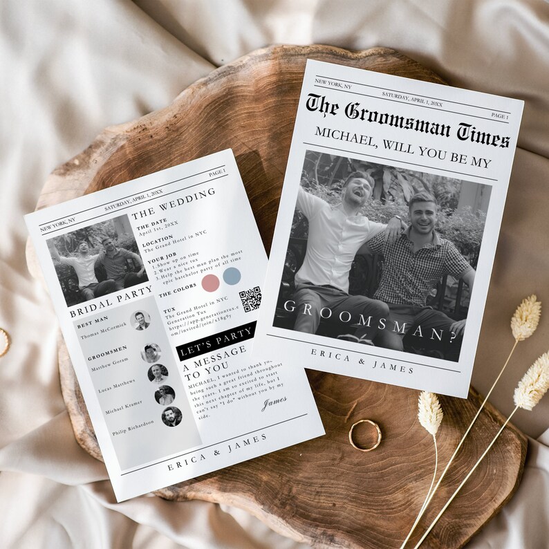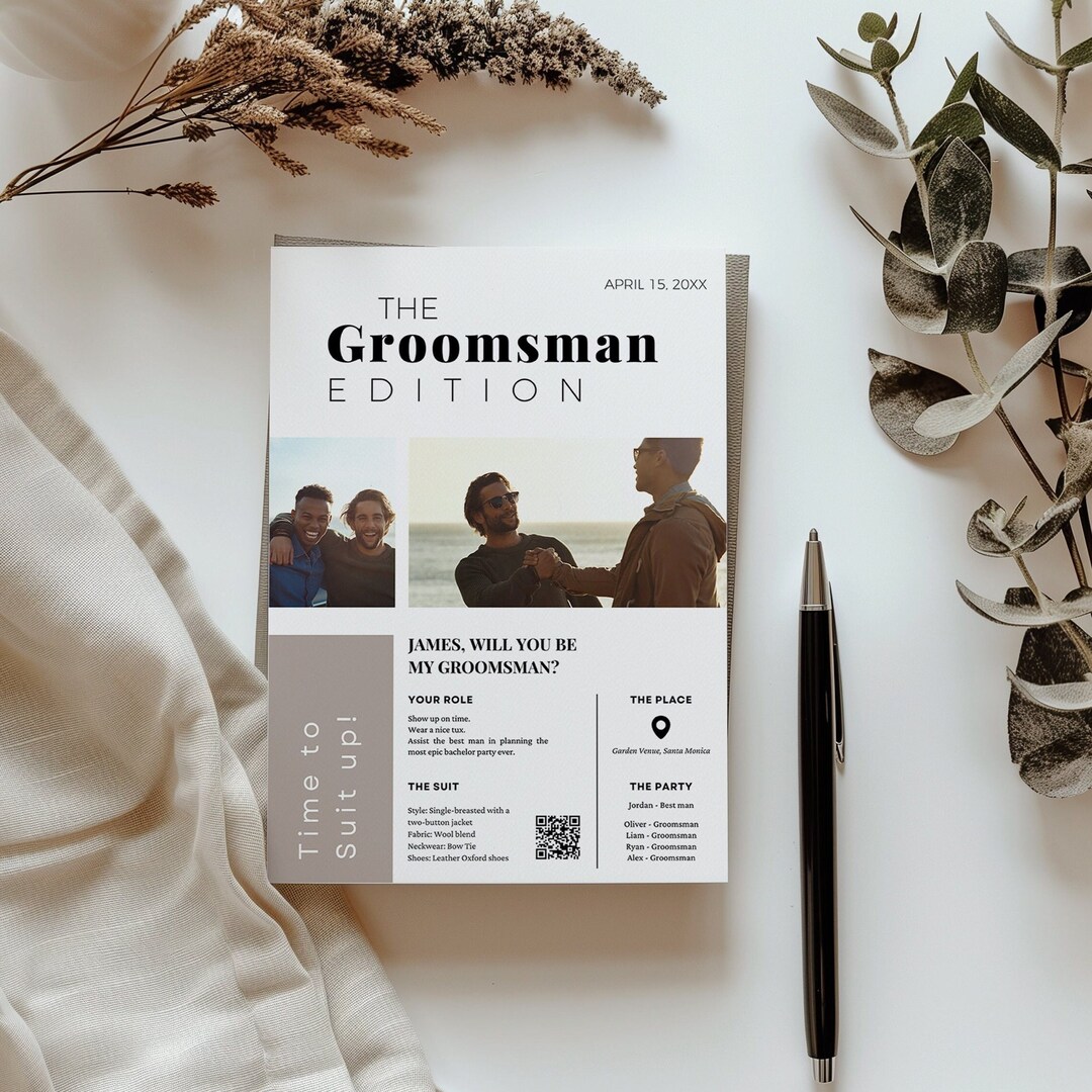 Groomsmen proposal template best man photo card custom newspaper Artofit