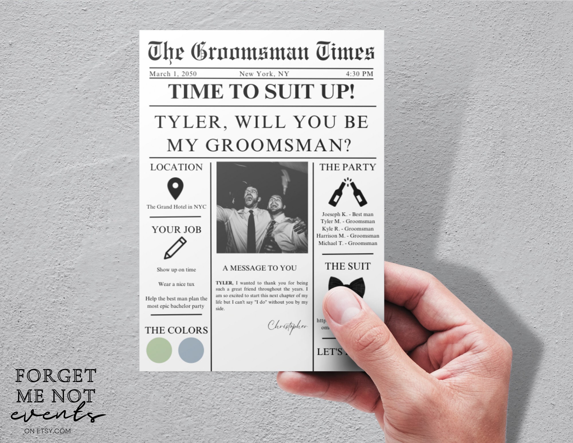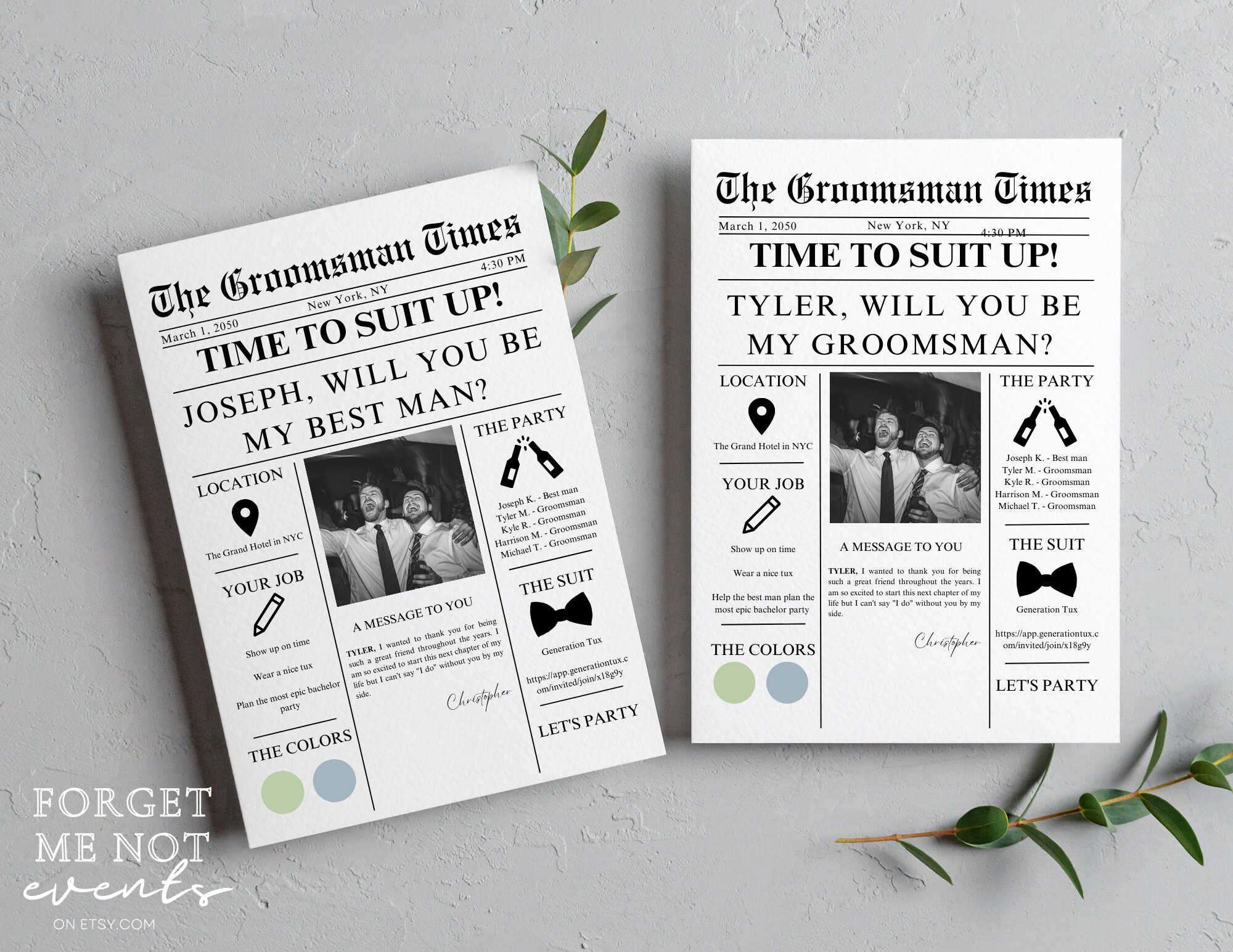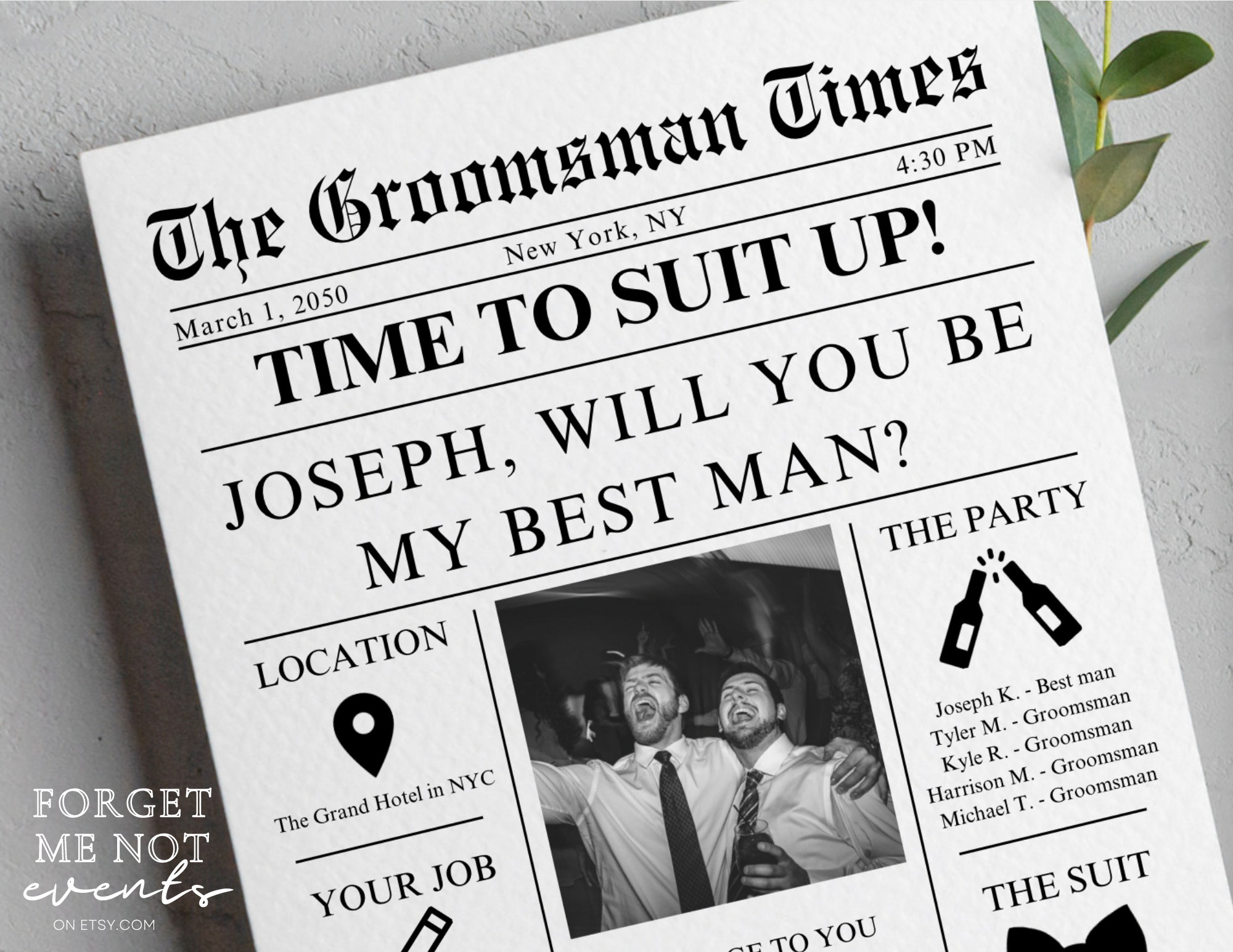 NEWSPAPER GROOMSMEN PROPOSAL Template Suit up Groomsman Etsy