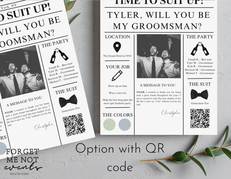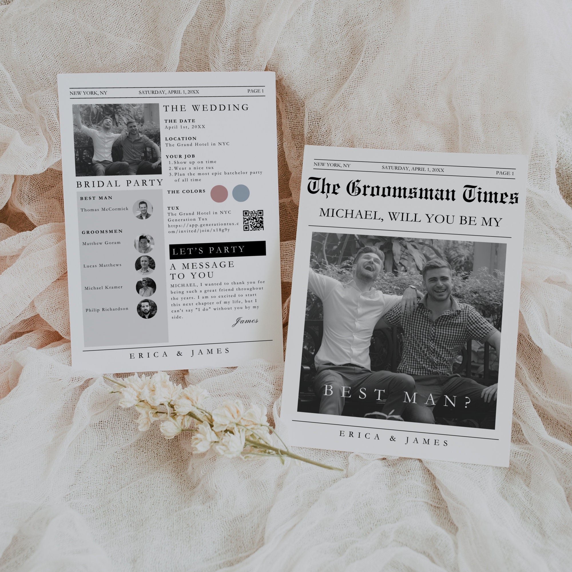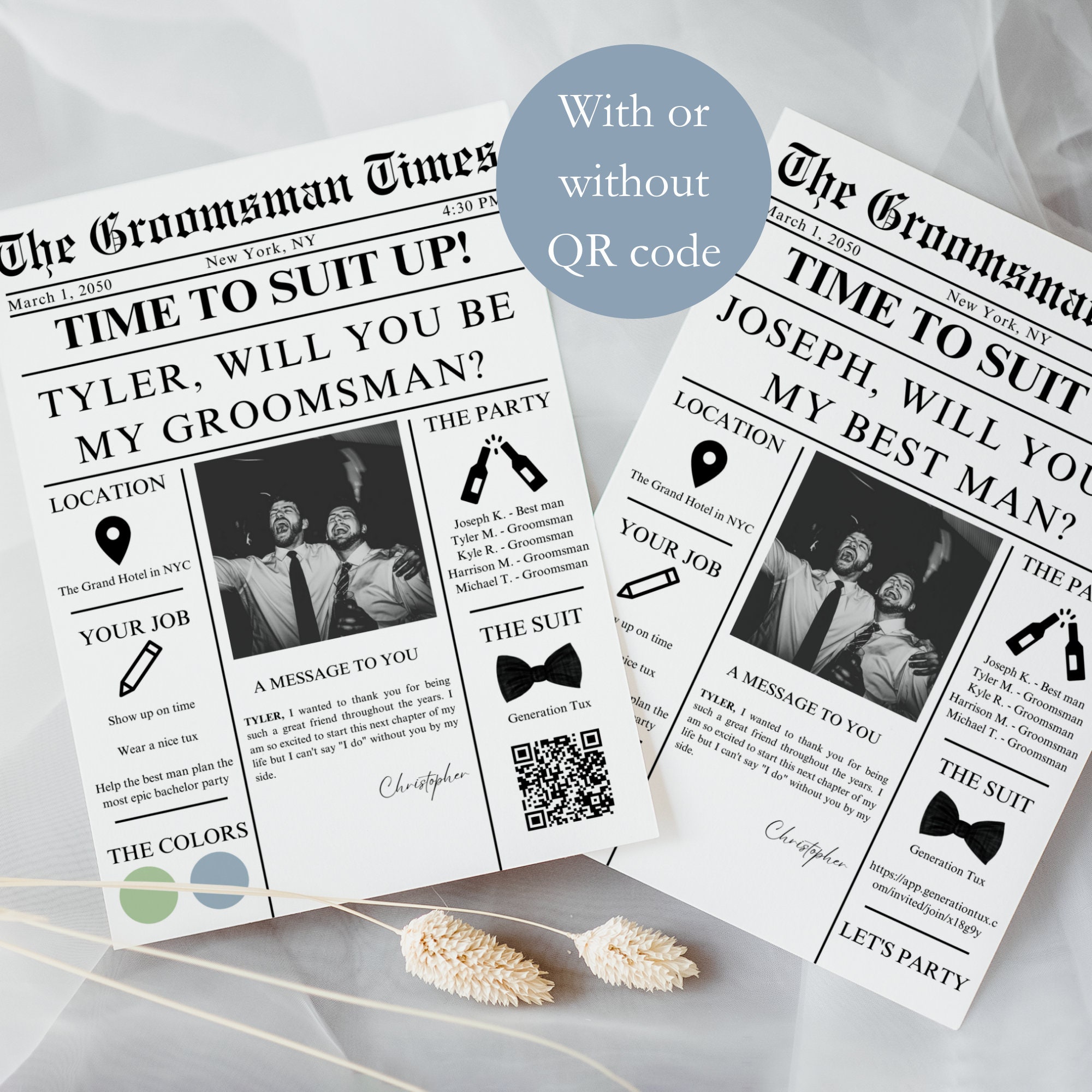 NEWSPAPER GROOMSMEN PROPOSAL Template Suit up Groomsman Etsy