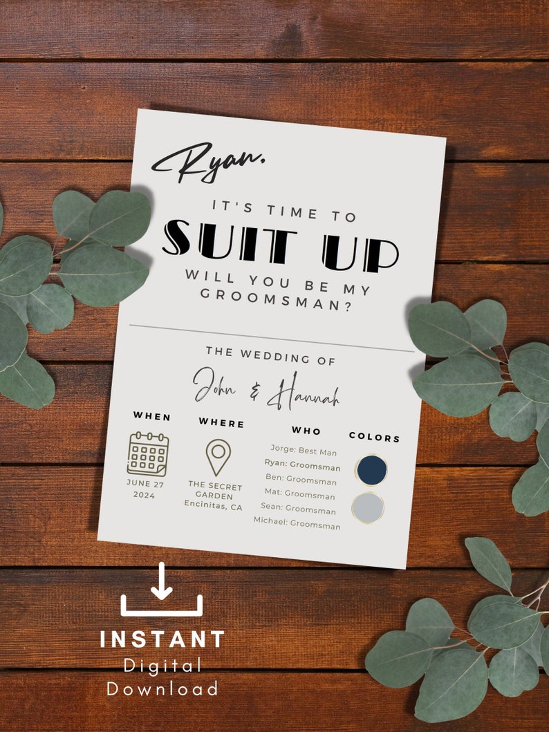 Adella suit up card template groomsmen proposal printable etsy Artofit