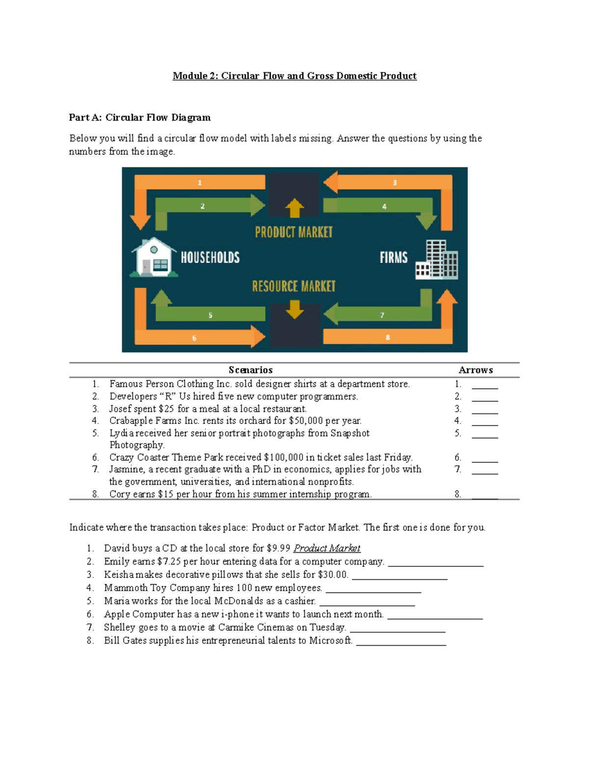 Module 2 Circular Flow and Gross Domestic Product Answer the