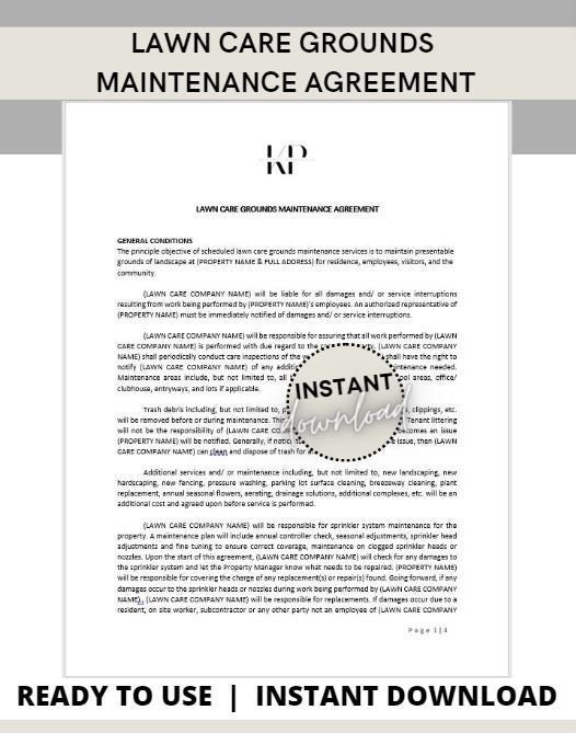 Lawn Services Maintenance Agreement ︱contract ︱template ︱landscaping