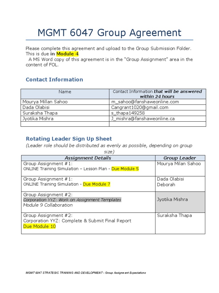 MGMT 6047 Online Group Agreement Template PDF Computer File Software