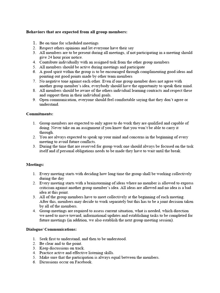 Group Agreement Template Web a group contract is an agreement between