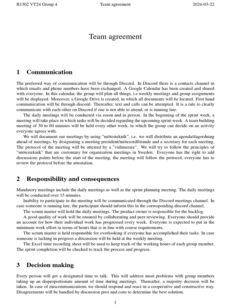 Group 4 Team Agreement PDF Scrum (Software Development)