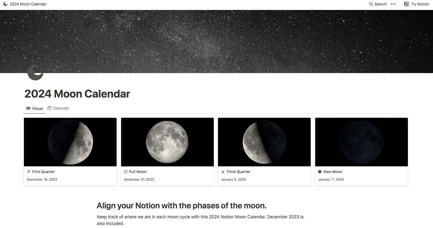 2024 Notion Moon Phase Calendar Garden Planner Biodynamic Growing