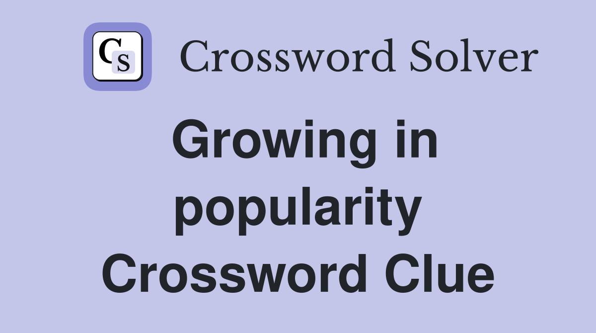 Growing in popularity Crossword Clue Answers Crossword Solver