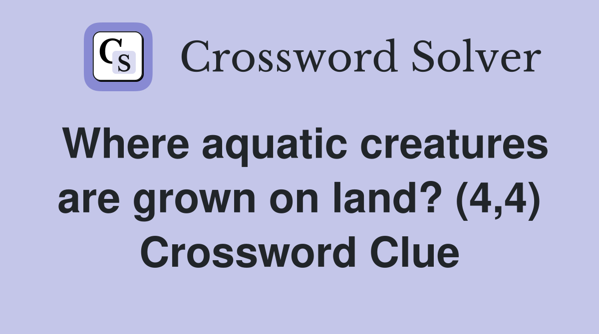 Where aquatic creatures are grown on land? (4 4) Crossword Clue