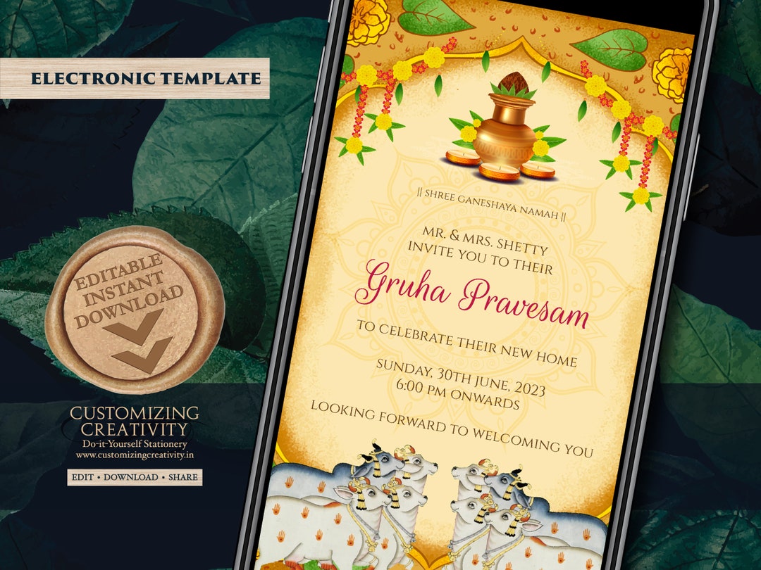 Editable Griha Pravesh Invitation Printable Gruhapravesam Invite