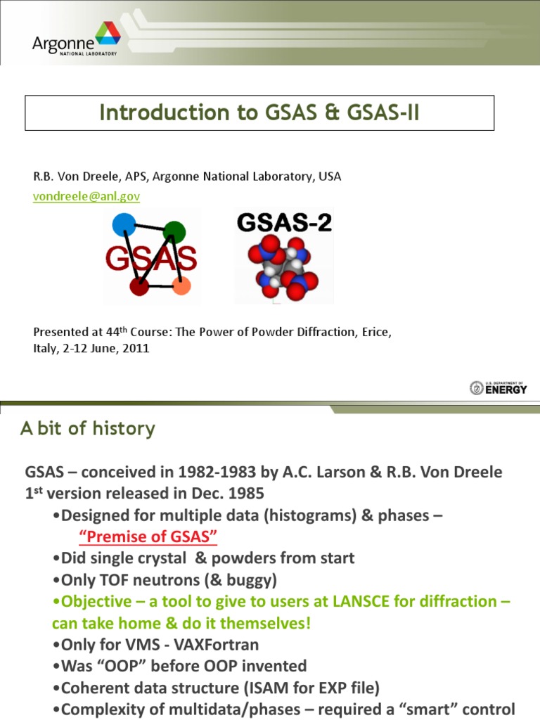 Introduction To GSAS GSAS II: R B Von Dreele APS Argonne National