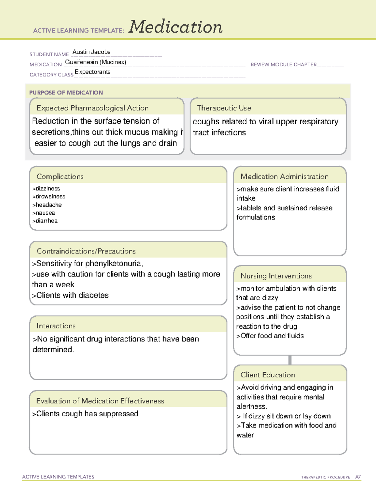 Guaifenesin medication template ACTIVE LEARNING TEMPLATES