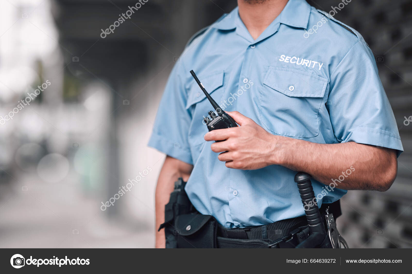 Closeup Photo Security Guard Using Walkietalkie Stock Photo (Edit Now