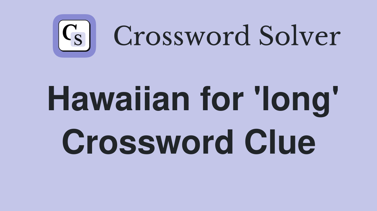 Hawaiian for #39 long #39 Crossword Clue Answers Crossword Solver