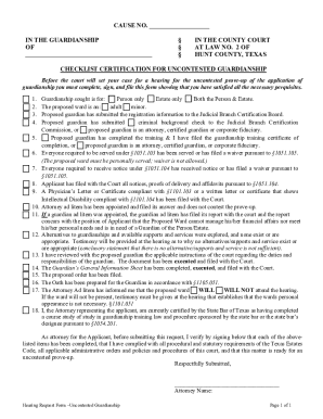 Fillable Online Checklist Certification for Uncontested Guardianship