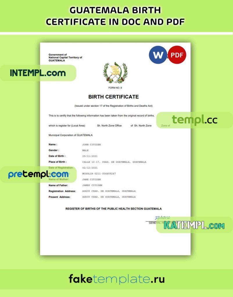 download Guatemala Birth certificate pdf and word template FULLPSD