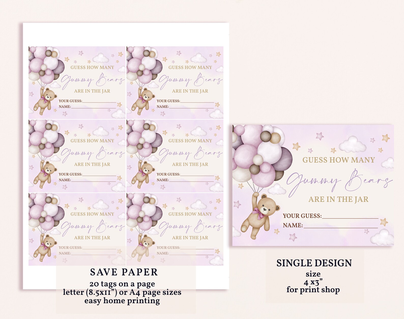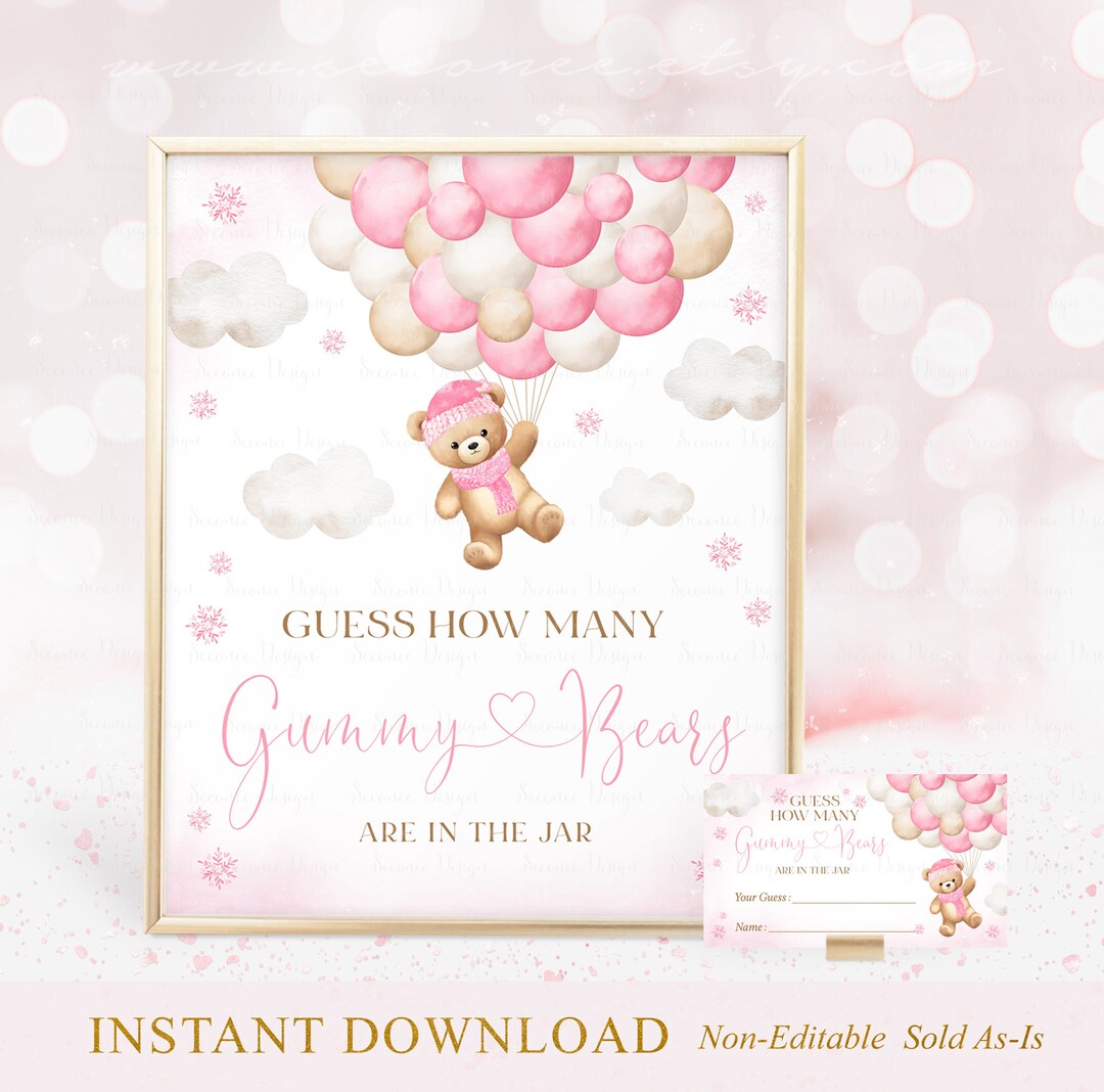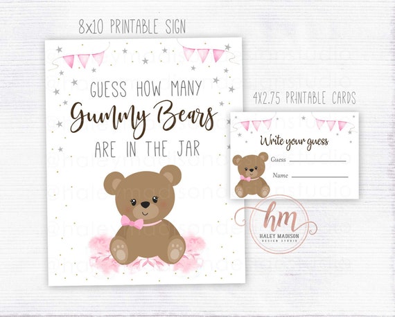 PRINTABLE Guess How Many Gummy Bears PINK Sign Bearly Wait Etsy