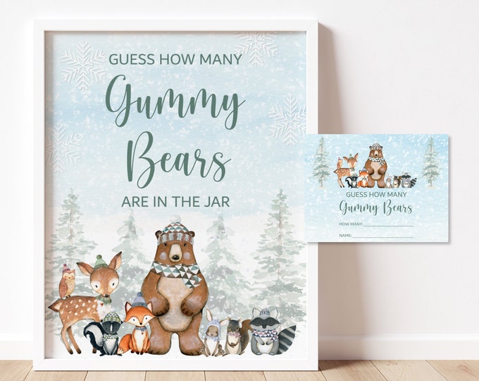 Woodland Guess How Many Gummy Bears Are in the Jar Game Printable Baby