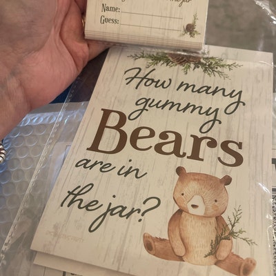 Guess How Many Gummy Bears in the Jar Game Woodland Bear Baby Shower