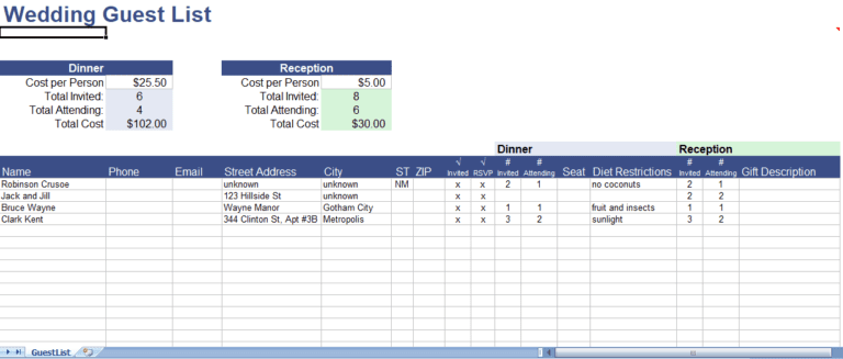 Creating The Ultimate Party Guest List Excel Template And Google Sheets